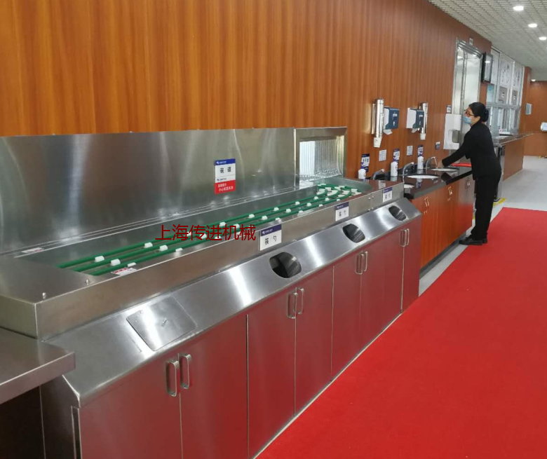 江浙滬餐具回收輸送線傳送帶設(shè)備臺(tái)架系統(tǒng)、動(dòng)力系統(tǒng)、輸送鏈系統(tǒng)、供水系統(tǒng) 、軌道系統(tǒng)。設(shè)備主要采用304不銹鋼及進(jìn)口電機(jī)器元件等美觀、衛(wèi)生、耐用的材料制造。