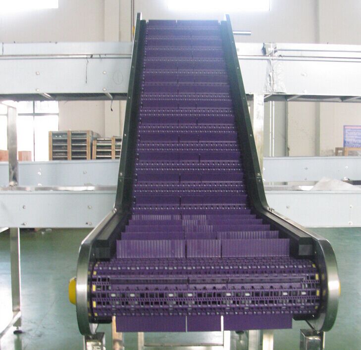 塑料網(wǎng)帶提升機(jī)廣泛應(yīng)用于飲料瓶、鋁罐、藥品、化妝品、食品等行業(yè)的輸送,通過選用不同的網(wǎng)帶可以制作成儲瓶臺、提升機(jī)、殺菌機(jī)、蔬菜清洗機(jī)、冷瓶機(jī)以及肉食品輸送等行業(yè)專用設(shè)備。