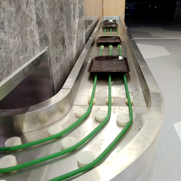 傳進餐盤輸送機巧妙的解決員工食堂餐具回收難題;