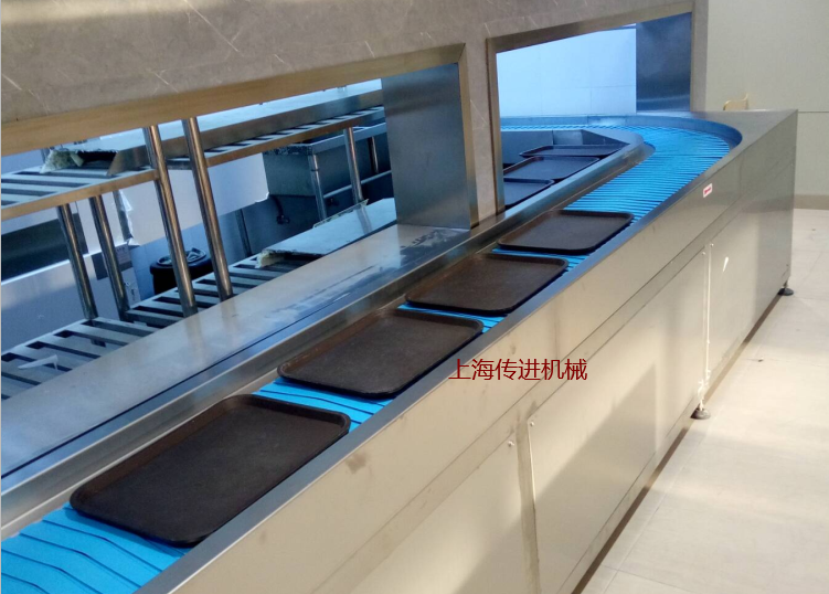 上海傳進(jìn)機(jī)械餐盤回收輸送機(jī)用途:適用于企事業(yè)單位食堂餐具目收、快餐工廠、食品工廠餐具傳送等。