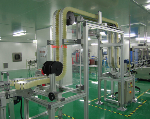 傳進(jìn)夾瓶輸送機用于將產(chǎn)品直接在樓層間進(jìn)行提升或下降,可直接將提升機的進(jìn)出口與上下樓層內(nèi)的生產(chǎn)設(shè)備的出入口連接起來,以達(dá)到一個連續(xù)的生產(chǎn)工藝狀態(tài),彌補了使用普通電梯所造成的間歇性的工作方式的缺陷;適用產(chǎn)品對象為瓶裝、聽裝、塑料盒、紙盒、紙箱包裝的產(chǎn)品;鏈板節(jié)距38.1mm;轉(zhuǎn)彎半徑650mm;輸送速度30m/min(可變頻調(diào)速)輸送物件寬10~200mm;輸送物件高度50~200mm;生產(chǎn)能力300~1000件/分種;廣泛的應(yīng)用于飲料食品,藥品,塑膠,電子元件,印紙,汽車零部件的制造等行業(yè)。