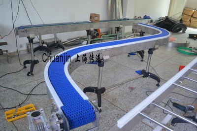 傳進(jìn)牌模塊式輸送機(jī)相比較其他類(lèi)型輸送機(jī),模塊網(wǎng)帶鏈輸送機(jī)具有以下特點(diǎn):