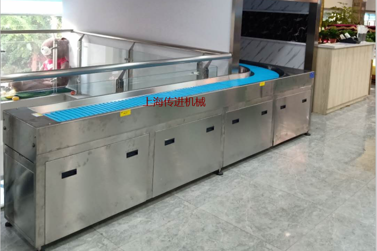 2.傳進牌餐盤輸送機其速度可以調(diào)整,變頻器式調(diào)速,適合各種餐具的回收。