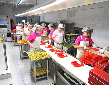 傳進(jìn)配餐輸送機(jī)這些先進(jìn)設(shè)備替代部分人工操作,成為餐食生產(chǎn)的重要生產(chǎn)力,既降低了一線員工的勞動(dòng)強(qiáng)度,也極大地提升了生產(chǎn)效率;