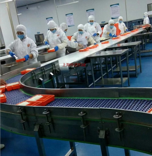 9、傳進(jìn)牌配餐輸送帶采用SUS304不銹鋼傳動(dòng)輪、食品級(jí)皮帶, 輸送   帶具有防偏定位功能;