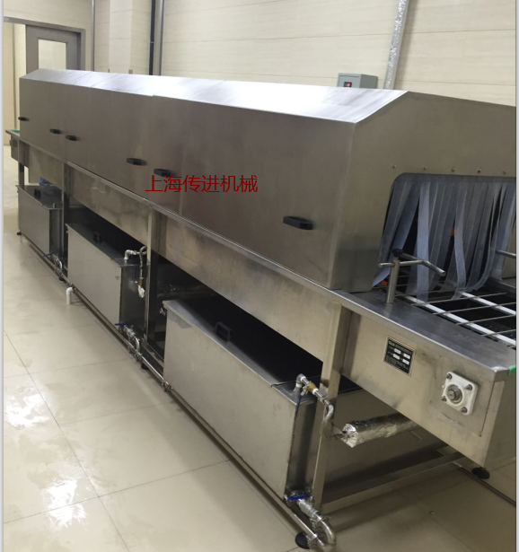 • 洗筐機、周轉(zhuǎn)筐清洗機、洗托盤機、食品筐清洗機機架采用優(yōu)質(zhì)SUS304不銹鋼制作,本機首先采用高壓氣泡熱水水浴清洗,清洗能力大,除油污效果好,洗凈率高,經(jīng)過輸送網(wǎng)帶,傳送至